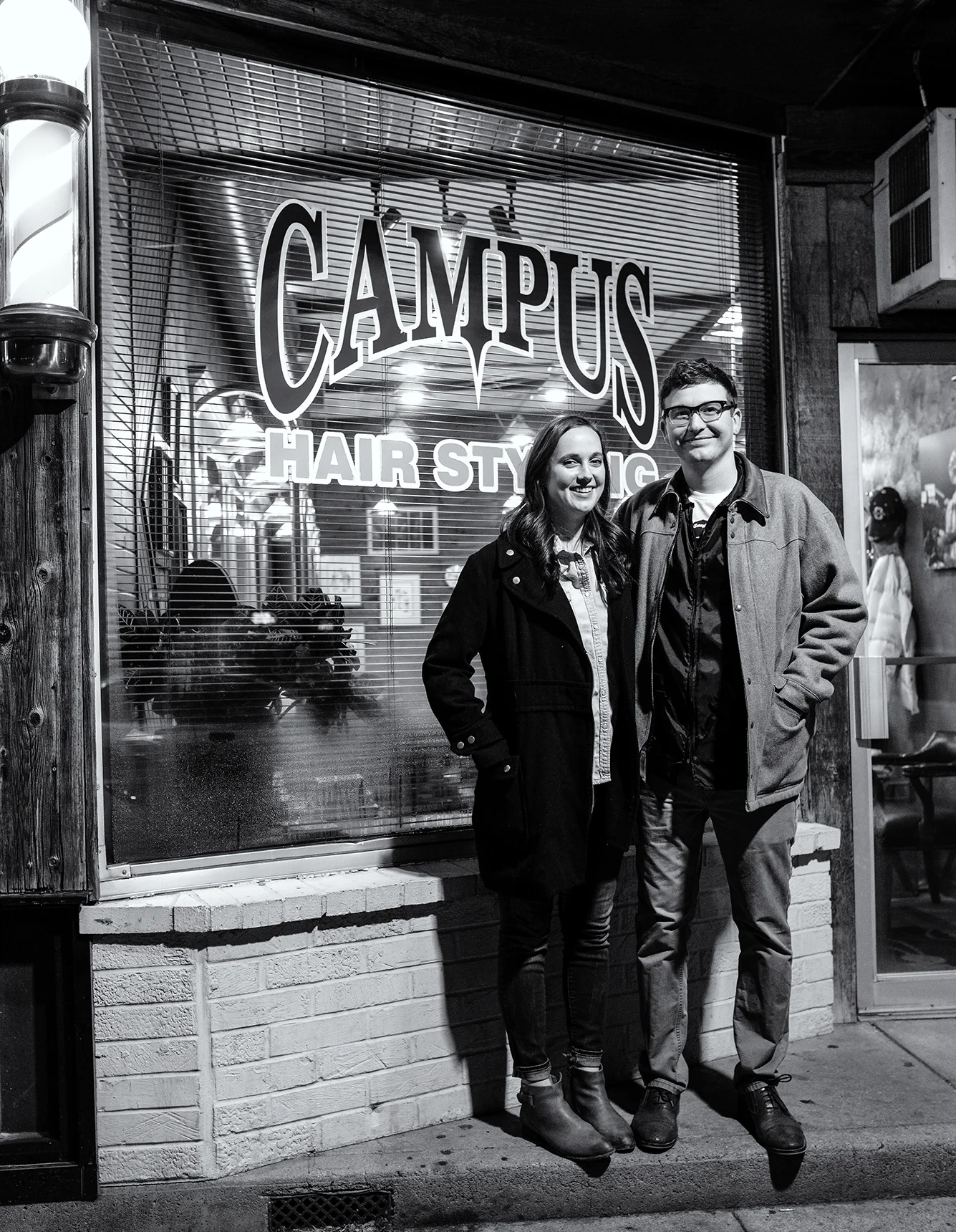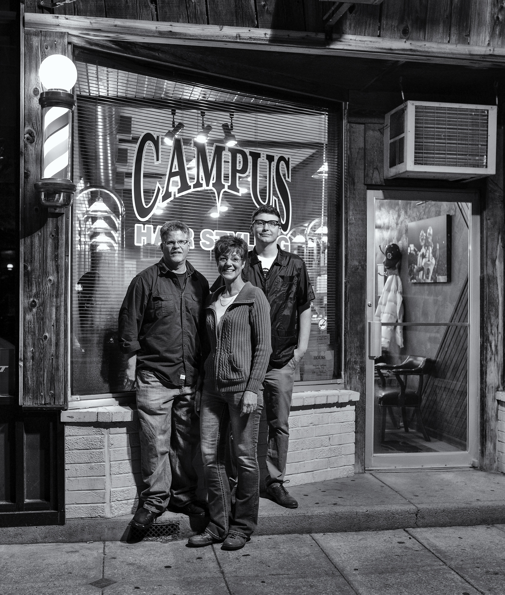 The location of Campus Barber Shop was originally known as the Orange Bowl throughout the 1940s to the early 1960s. While tracking sports scores from around the country the owners were one of Manhattan's sources for candy bars, cigarettes, hot dogs and, of course, orange juice.